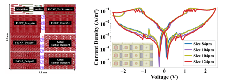Abstract: This work presents a characterization platform for comprehensive electrical testing of heterogeneously integrated oxide stacks, enabling simultaneous evaluation of multiple functional layers at different fabrication stages. The study focuses on the integration of ferroelectric hafnium zirconium oxide with vanadium oxide, a strongly correlated material exhibiting a metal insulator transition. The platform enables detailed analysis of how functional properties such as ferroelectric switching and correlated transport evolve during processing. Results reveal increased leakage in hafnium oxide and suppression of the metal insulator transition during crystallization, both with and without alumina oxygen blocking layers. Implemented using open source design and layout tools, this platform provides a powerful diagnostic and optimization framework for the integration of complex oxide materials, supporting the development of advanced ferroelectric and neuromorphic devices.